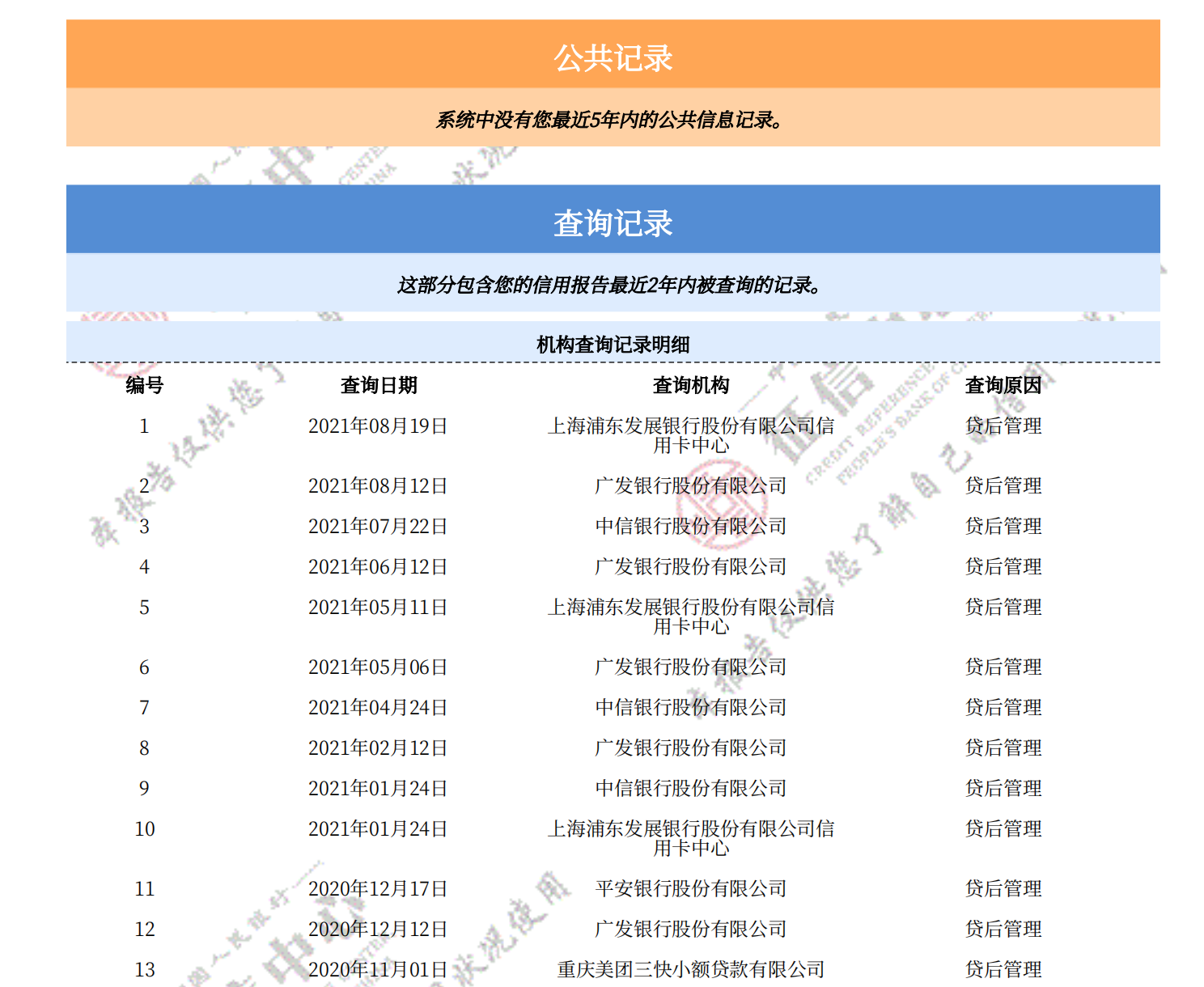 • 3. 征信查询:个人可以通过授权的方式查询自己的信用报告和信用评分,了解自己的信用状况。
